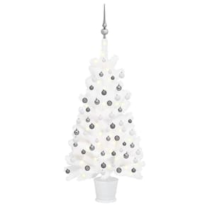 Esta linda árvore de Natal artificial branca com um vaso é realista em sua forma e aparência, criando a atmosfera certa para o próximo Natal.
