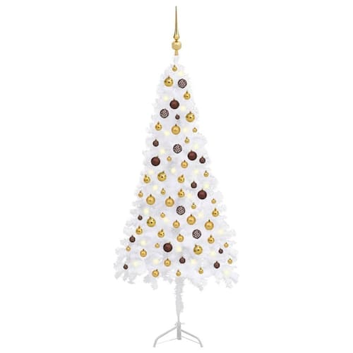 Peça central impressionante?: A árvore de Natal artificial de canto cria uma atmosfera festiva única -?