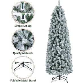 ESPECIFICAÇÃO: Materiais: PVC, ferro Cor: branco Categorias: lápis flocado apagado Árvore de Natal artificial Contagem total de pontas: 814 Dimensão geral: 29,5 × 82,5” (diâmetro. × H) Dimensão do suporte: 20 × 5,5” (diâmetro. ×H) G.W.: 21,7 lb; N.W.: 16,6 lb Nota: Por favor, permita erros de ±1,2" devido à medição manual. - Materiais selecionados: todos os galhos e pontas desta árvore de Natal coberta de neve são feitos de PVC de qualidade. O suporte e o poste do tronco da árvore são feitos de ferro resistente. Galhos e folhas de PVC premium são duráveis, flexíveis e parecem super reais. Um suporte de base amplo e dobrável garante grande estabilidade e capacidade de carga para ficar parada. Ultrarrealista: esta árvore de Natal artificial vem com folhas exuberantes e fofas cobertas de neve flocada, exibindo uma árvore de Natal festiva e realista que destaca sua sala de estar em um minuto. Muitos galhos e pontas dão uma aparência de corpo inteiro, o que torna esta árvore de Natal flocada espessa e pesada - Durável para uso repetido: nossas árvores de Natal artificiais são feitas de plástico resistente, PVC durável e ferro resistente, o que garante que a árvore seja durável o suficiente para uso prolongado e repetido a cada inverno. Esta árvore artificial será uma boa solução para economizar dinheiro e uma opção única em cada festival - Configuração fácil: todo o hardware e ferramentas úteis necessários são fornecidos na embalagem com um manual de instruções bem ilustrado. As habilidades mínimas necessárias para montar esta árvore de Natal a lápis - sem bricolage: esta árvore de Natal flocada não inclui luzes e outros enfeites decorativos. Deixamos a alegria de escolher o estilo desejado de decoração e ornamentos com você, você também terá a felicidade de transformá-lo em uma peça mágica e deslumbrante com sua família e amigos