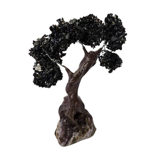 É uma peça única feita a partir de cristais naturais de Turmalina, combinados para formar uma estrutura decorativa que remete a uma árvore. Conhecida por suas poderosas propriedades de proteção e purificação, a Turmalina é uma das pedras mais valorizadas tanto por colecionadores quanto por aqueles que buscam equilíbrio energético em suas casas ou ambientes de trabalho.
