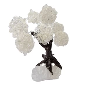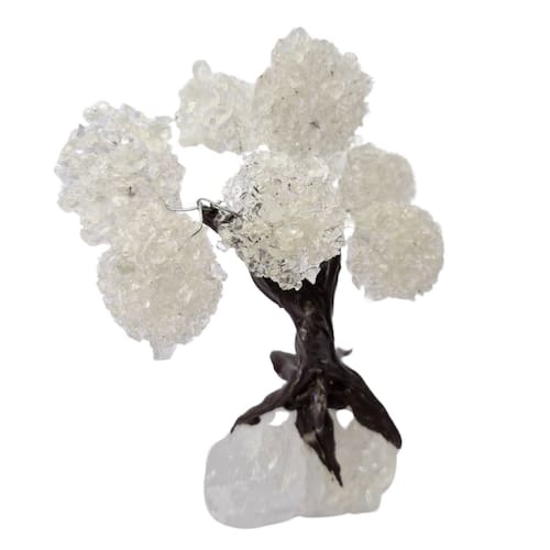 A Árvore de Pedra Natural de Quartzo Transparente é uma peça única que alia beleza e poder energético. O quartzo transparente é conhecido por suas propriedades purificadoras e amplificadoras, sendo perfeito para trazer luz e positividade ao seu lar ou escritório.