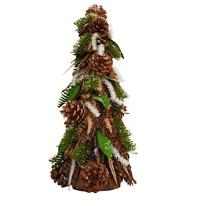 Árvore Decorativa de Natal pinhas naturais para sobrepor móvel com 43cm de altura.