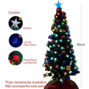 Árvore Natal Fibra Ótica 90 cm Bivolt Bolinhas Led Ponteira