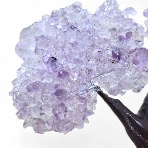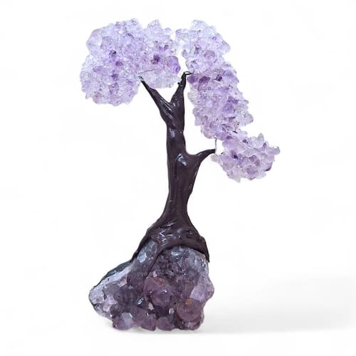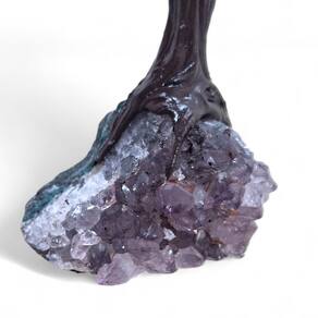 DETALHES DO PRODUTO: Detalhes do Produto: Base em drusa de Ametista Tronco e galhos em metal e resina "Folhas" em pedra natural Tamanho aproximado: 13,50 cm de altura x 10 cm de comprimento