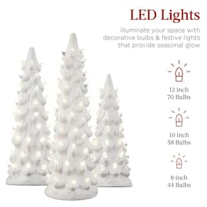 Especificações: 8 polegadas Dimensões da árvore: 3,4" (diâmetro) x 8" (A) Dimensões da árvore de 10 polegadas : 3,5" (diâmetro) x 10" (A) Dimensões da árvore de 12 polegadas: 4" (diâmetro) x 12" (A) Peso total do produto: 2,65 libras. Requisito de bateria: AAA (total de 9 baterias, 3 baterias para cada árvore) Material: cerâmica sem necessidade de montagem O pacote inclui: árvore de cerâmica de 8 polegadas Árvore de cerâmica de 10 polegadas em Árvore de cerâmica somente para uso residencial BCP SKU: SKY6995 - ACABAMENTO PINTADO À MÃO: este conjunto de árvore de Natal em cerâmica é meticulosamente trabalhado, pintado à mão cores e acabamentos brilhantes para criar uma decoração verdadeiramente única - LUZES LED: possui 10 luzes LED alimentadas por bateria e vem com uma coleção de lâmpadas decorativas para alegrar suas férias; número de lâmpadas decorativas (8 pol/10 pol/12 polegadas): 44/58/70 - ALIMENTADO POR BATERIA COM TEMPORIZADOR EMBUTIDO: instale 3 pilhas AAA em cada árvore e ajuste o cronômetro automático (8 horas ligado/16 horas desligado) para desfrutar dessas árvores durante toda a temporada; Nota: as baterias não estão incluídas — ADIÇÃO ELEGANTE: tamanho perfeito para caber em qualquer bancada, mesa, escrivaninha ou lareira; agrupe-as junte árvores ou espalhe-as por sua casa para dar um toque de magia a cada cômodo - EXPANDA SUA COLEÇÃO: construa sua própria floresta natalina ao coletar nossas árvores de cerâmica festivas e altamente presenteáveis para encher sua casa ou escritório com alegria sazonal; DIMENSÕES DA ÁRVORE DE 8 POLEGADAS: 3,4" (diâmetro) x 8" (A); DIMENSÕES DA ÁRVORE DE 10 POLEGADAS: 3,5" (diâmetro) x 10" (A); DIMENSÕES DA ÁRVORE DE 12 POLEGADAS: 4" (Diâmetro) x 12" (H)