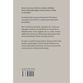 Quem nunca ouviu falar do complexo de Édipo? Quem ainda pode alegar cansaço quando comete um ato falho? A obra freudiana é uma das contribuições intelectuais mais importantes do século 20, com repercussões que ultrapassam a prática psicanalítica e atravessam diferentes campos do saber. Neste volume, Jacques André apresenta 100 termos frequentes do léxico de Freud que mostram, de maneira peculiar, não apenas a amplitude de tais palavras em sua teoria, mas sobretudo algumas das transformações mais decisivas em sua obra. Os verbetes escolhidos são conceitos (inconsciente, repressão, etc.), termos da linguagem cotidiana cujo significado foi enriquecido ou alterado (ciúme, morte, negação, etc.) ou, ainda, nomes e referências culturais que influenciaram diretamente a obra de Freud (Acrópole, Hamlet, Leonardo da Vinci). As definições de cada verbete, a um só tempo densas e concisas, fazem deste glossário uma porta de entrada inesperada para o “idioma” de Freud; um convite para reconhecermos a complexidade e a originalidade, mas também o caráter ambíguo e os impasses de sua teoria. Marca: QUINA EDITORA