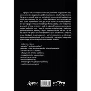 O que posso fazer para mudar essa situação? São justamente as indagações sobre a vida, e não somente sobre as organizações, que determinam o sucesso de muitos empreendedores. Não apenas em termos de capital, mas, principalmente, porque nossa existência é brevíssima demais para simplesmente viver para o trabalho. A leitura deste livro é recomendada para todos aqueles, empreendedores ou não, que desejam (re)pensar as organizações e a vida. Com uma linguagem simples e ao mesmo tempo reflexiva, a obra traz o saber interdisciplinar perpassando por temas pertinentes à gestão de negócios. O livro é dividido em pequenos capítulos com histórias, contos e relatos de empresários, evidenciando que a relação entre pessimismo e otimismo, indiferença e empatia, entre outros conceitos, tem mais a ver com nossas escolhas do que com um universo determinista ou com coisas fantasiosas como sorte ou azar. Anjos à porta do paraíso, sapo coach e gato boêmio são algumas das histórias que trazem conceitos administrativos de forma leve e divertida, e que também indagam sobre aspectos simples do cotidiano. Alguns assuntos levantados neste livro: – Missão, visão e valores; – Adaptação: “o que fazer e como fazer”; – Serenidade: trabalho profissional necessário, descanso físico e mental; – Consciência situacional e resiliência; – Se fazer presente em termos qualitativos; – Miopia administrativa: negar o contador; – Persistência versus teimosia; – Redes sociais e privacidade; – Funcionários que (nunca) devem ser promovidos; – O uso (in)correto do smartphone.