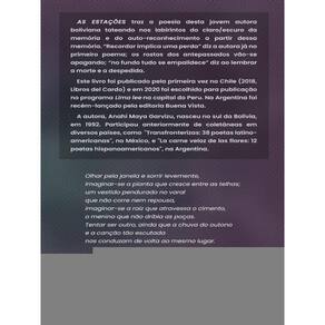 As estações traz a poesia desta jovem autora boliviana tateando nos labirintos do claro/escuro da memória e do auto-reconhecimento a partir dessa memória. “Recordar implica uma perda” diz a autora já no primeiro poema; os rostos dos antepassados vão-se apagando; “no fundo tudo se empalidece” diz ao lembrar a morte e a despedida. Edição bilíngue português/espanhol com tradução de Rafael Tourinho Raymundo. Este livro foi publicado pela primeira vez no Chile (2018, Libros del Cardo) e em 2020 foi escolhido para publicação no programa Lima lee na capital do Peru. Na Argentina foi recém-lançado pela editoria Buena Vista. > A autora, Anahí Maya Garvizu, nasceu no sul da Bolívia, em 1992. Participou anteriormente de coletâneas em diversos países, como "Transfronterizas: 38 poetas latinoamericanas", no México, e "La carne veloz de las flores: 12 poetas hispanoamericanos", na Argentina. > O livro aqui faz parte da Coleção Pequenas Noites: Vozes femininas da poesia sul-americana, composta de seis livros e que traz nas capas colagens da fotógrafa argentina Grete Stern e tem o título inspirado em um poema de Alejandra Pijarnik. Marca: ISTO EDIÇOES