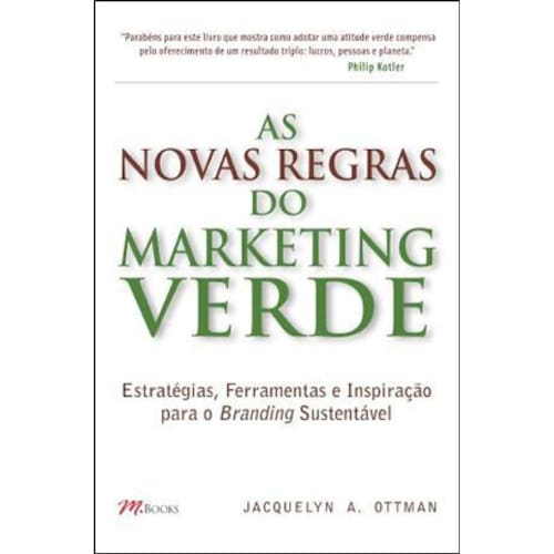 Como implantar em sua marca o conceito de SUSTENTABILIDADE e de compromisso com a ECOLOGIA e o MEIO AMBIENTE. O livro é uma ferramenta poderosa e estratégica para o sucesso de seus produtos e a consolidação de sua marca. O grande desafio das empresas, além do compromisso de assumir e implantar estes conceitos na produção e operacionalidade é agregar a seus produtos e marcas um comprometimento real e verdadeiro para que sejam identificados pelos consumidores, que, ao adquirirem, sintam que estão participando e colaborando com a melhoria da qualidade do meio ambiente. No livro As Novas Regras do Marketing Verde, Ottman oferece uma chance de desenvolver a criatividade e implementar estratégias práticas que ressaltem o valor inerente de produtos para que a sustentabilidade seja integrada às marcas além de ser uma ferramenta poderosa e estratégica para o sucesso de seus produtos e a consolidação de sua marca. O livro inclui depoimentos na 4º capa de Phillip Kotler e Peter Senge.