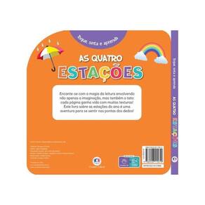 Encante-se com a magia da leitura envolvendo não apenas a imaginação, mas também o tato: cada página ganha vida com as texturas! Este livro sobre as estações do ano é uma aventura para sentir nas pontas dos dedos! Além de trabalhar as habilidades motoras e desenvolvimento sensorial do seu pequeno! Toque sinta e aprenda com diversão e cores alegres.