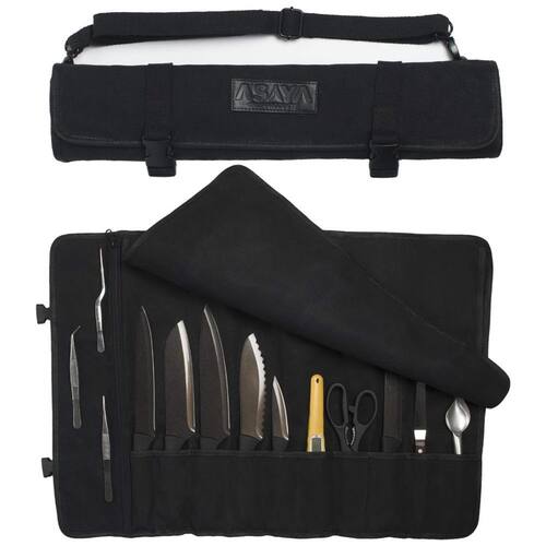 ARTESANATO ESPECIALIZADO Os rolos de facas Asaya são meticulosamente projetados para criar os estojos de viagem perfeitos para suas facas e equipamentos de chef. Feitos à mão com lona resistente de 10 onças, eles são construídos para durar muitos anos de uso e desgaste da cozinha. Queremos que nossos Chefs sejam configurados com o melhor equipamento possível que os dure por toda a vida. ESPAÇOSO E ESPAÇOSO Com 10 slots de faca no total e um grande bolso com zíper, este estojo de faca profissional pode transportar facilmente um conjunto completo de facas de chef e utensílios de cozinha. LEVE E PORTÁTIL Por si só, o estojo pesa apenas 2 libras. mas pode facilmente conter mais de 9 kg. vale a pena equipamento de cozinha. Com uma alça de ombro ajustável, este estojo de faca foi cuidadosamente projetado para ser confortável e fácil de transportar Marca: Não Informado