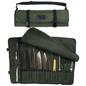 ARTESANATO ESPECIALIZADO Os rolos de facas Asaya são meticulosamente projetados para criar os estojos de viagem perfeitos para suas facas e equipamentos de chef. Feitos à mão, eles são construídos para durar muitos anos de uso e desgaste da cozinha. Queremos que nossos Chefs sejam configurados com o melhor equipamento possível que os dure por toda a vida. ESPAÇOSO E ESPAÇOSO Com 10 slots de faca no total e um grande bolso com zíper, este estojo de faca profissional pode transportar facilmente um conjunto completo de facas de chef e utensílios de cozinha. LEVE E PORTÁTIL Por si só, o estojo pesa apenas 1,36 kg. mas pode facilmente conter mais de 20 lbs. vale a pena equipamento de cozinha. Com uma alça de ombro ajustável, este estojo de faca foi cuidadosamente projetado para ser confortável e fácil de transportar Marca: Não Informado