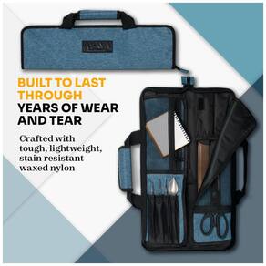 ARTESANATO ESPECIALIZADO Os rolos de facas Asaya são meticulosamente projetados para criar os estojos de viagem perfeitos para suas facas e equipamentos de chef. Feitos à mão com nylon resistente, leve e resistente a manchas, eles são construídos para durar muitos anos de uso e desgaste da cozinha. Queremos que nossos Chefs sejam configurados com o melhor equipamento possível que os dure por toda a vida. ESPAÇOSO E ESPAÇOSO Com 12 slots de faca no total e bolsos com zíper, este estojo de faca profissional pode transportar facilmente um conjunto completo de facas de chef e utensílios de cozinha. LEVE E PORTÁTIL Por si só, o estojo pesa apenas 1 kg. mas pode facilmente conter mais de 6 kg. vale a pena equipamento de cozinha. Este estojo de faca foi cuidadosamente projetado para ser perfeito para o chef viajante. Pode ser transportado pela alça ou é pequeno o suficiente para caber dentro de uma bolsa maior Marca: Não Informado