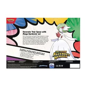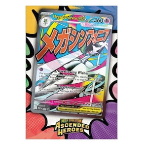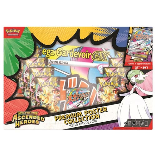 Com ataques poderosos e muitos pontos de vida, rompem barreiras na batalha! Junte-se a um desses poderosos Pokémon de Mega Evolução ex em uma carta promocional holográfica com arte completa e encontre ainda mais Pokémon em um pacote com 10 boosters da expansão Mega Evolução Heróis Ascendidos. Você também receberá um pôster grande mostrando Mega Pokémon desta expansão especial.