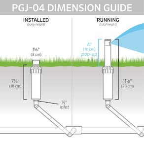 - Perfil baixo quando desligado, desempenho total quando ligado: o pop-up de 10 cm sobe acima da grama para pulverizar uniformemente, depois desaparece no gramado para um acabamento limpo e protegido.