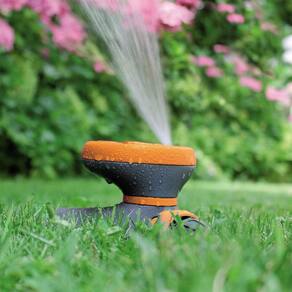 Aspersor circular multifunção com base. Design moderno e funcional estudado para obter os máximos desempenhos. Com a simples rotação do disco, podem ser pulverizadas 8 áreas diversas. Vazão máxima 18 l/min. Possui adaptador de engate rápido macho.Fabricado na Itália.