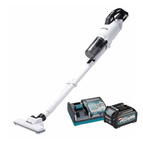 Aspirador a Bateria Makita 40V com Ciclone CL003GZ10 + 1 Bateria 40V 2A + Carregador DC40RC 220V Aspirador A Bateria Makita 40V CL003GZ10: Aspirador Portátil da linha 40Vmáx XGTSilencioso e PotenteCompatível com a potência de sucção dos aspiradores elétricos, mas com uma operação mais silenciosa, prática e sem fios e cabos.Cápsula com abertura frontal e com filtro descartável com capacidade de 500 mlAcionamento eletrônico com 4 níveis de sucção e luz de led de trabalhoMotor potente BL sem escova de carvão Ideal para uso em hospital, hotel, call center, escritórios, mercado de limpeza profissional e em residências Especificações:Sucção Máxima: 21 kPaFluxo de ar máximo: 1,2 m/minTipo de Coletor: Cápsula com abertura frontalCapacidade Coletor: 500 mlFiltro descartávelAcionamento: Botão Eletrônico com 4 níveisNível de ruído: 54 dB A quando operado no nível 1Peso com bateria BL4025 : 1,8 kgAutonomia de até 60 minutos quando operado no nível 1 com bateria de 40Vmax XGT de 2,0Ah BL4020 Itens que Acompanham:01 - Aspirador a Bateria Makita 40V CL003GZ10;01 - Bateria 40V 2Ah;01 - Carregador DC40RC 220V;01 - Bocal de aspiração piso e carpete;01 - Bocal para cantos;01 - Tubo reto;05 - Filtros descartáveis 198745-3 . Imagens Meramente Ilustrativas