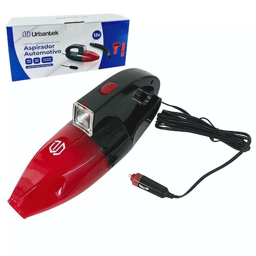 Aspirador automotivo portátil com plug de 12V e lanterna integrada.Tipo de coletor