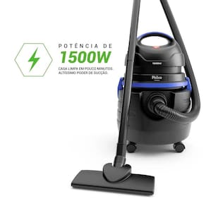 Características Principais do Produto: Alimentação: Disponível em 110V ou 220V Altura: 52,0 cm Largura: 35,8 cm Comprimento: 35,8 cm Comprimento do Fio: 3,2 m Cor: Preto/Azul Enrolamento Automático do Fio: Porta Fio Potência: 1500W Tipo de Aspirador: Pó e Água