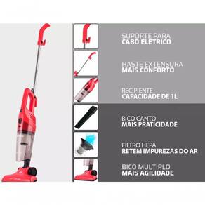 Aspirador de pó 2 em 1, pode ser utilizado verticalmente ou como aspirador de mão, com filtro HEPA e reservatório de 1,2L.Tipo de coletor