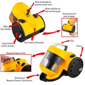 Aspira sólidos, Filtro lavável, Design compacto, Rodas para mobilidade, Tubo prolongador telescópicoTipo de coletor