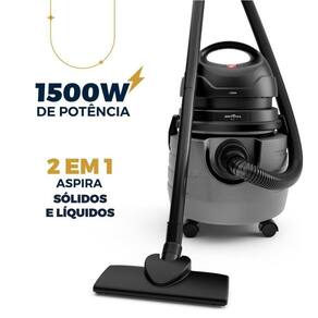 Aspirador de pó e líquidos com função sopro. Possui 1500W de potência e reservatório de 20L. Inclui diversos acessórios para diferentes tipos de limpeza e superfícies. Possui rodinhas para fácil movimentação e cabo com suporte para enrolar.Tipo de coletor