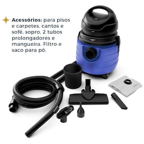 O Aspirador de Pó e Água Britânia 19L Função Soprar 1500W BASE80 é a solução ideal para quem busca potência e praticidade no dia a dia. Com 1500W, ele garante alto desempenho para aspirar sólidos e líquidos, entregando resultados consistentes em qualquer ambiente. A capacidade total de 19 litros do Aspirador Britânia permite realizar limpezas completas sem pausas frequentes para esvaziar o reservatório, tornando-se perfeito para tarefas residenciais ou profissionais. O filtro lavável protege o motor e garante durabilidade, reduzindo custos de manutenção. Além de aspirar, o Aspirador BASE80 conta com a função sopro, ideal para inflar colchões de ar, acender churrasqueiras ou remover sujeira de cantos difíceis. Acompanhado de acessórios específicos para pisos, carpetes, sofás e frestas, o Aspirador de Pó e Água oferece limpeza personalizada para cada superfície. Com rodinhas ágeis, alça ergonômica e cabo de 3,2m, a movimentação é prática e confortável. Seja em áreas internas ou externas, o Aspirador de Pó e Água Britânia 19L Função Soprar 1500W BASE80 entrega robustez, versatilidade e a confiança da Britânia em cada uso. • Cordão com alcance de 3,2m • Base de 26cm com inclinação de 30° e giro de 180° • Capacidade total de 19L (12,5L para água e 5L para pó) • Função sopro • Funcionamento com fio • Acessórios inclusos: o 01 acessório para pisos e carpetes o 01 acessório para frestas e cantos o 01 acessório para sofá o 01 acessório para sopro o 02 tubos prolongadores • Filtro esponja • Rodinhas e alça para transporte • Suporte para enrolar o cordão.