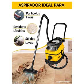 Aspirador de pó profissional com 1600W de potência, ideal para uso diário ou profissional. Possui função de sucção e sopro, filtro HEPA de alta eficiência, sistema START/STOP para automação com ferramentas pneumáticas, e capacidade de aspirar sólidos e líquidos. Conta com saco coletor de 30L, sistema de filtragem em 3 etapas, rodas para mobilidade e tubo telescópico ajustável.Tipo de coletor