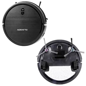 Aspirador robô 3 em 1 Agratto Praticci Premium, varre, aspira e passa pano, com design compacto, sensores antiqueda, escovas laterais, protetor anti-risco e mop lavável.Indicador de coletor cheio