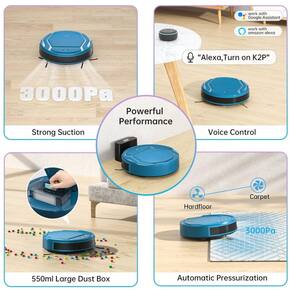 Aspirador de pó robô com controle via aplicativo, 6 modos de limpeza, sucção de 2200Pa, tecnologia FreeMove 3.0 anti colisão.Indicador de coletor cheio