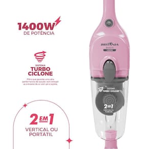 Imagine um Aspirador de pó que transforma a limpeza da sua casa em uma tarefa rápida, eficiente e sem esforço. O Aspirador de Pó Rosa Vertical 2 em 1 Britânia 1400W BASE30 chega para revolucionar sua rotina, combinando potência, praticidade e um design moderno na cor rosa, que traz um toque de estilo ao seu lar.