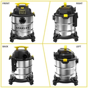 Características Gerais do produto Aspirador de pó Stanley SL18116, 4CV de potência, aspira seco e metrosolhado, função soprador, tanque de 22,7 litros, alça de transporte, rodízios, enrolador de cabo.