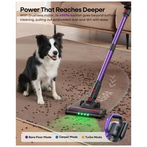 Recurso Especial: Motor sem escova de 450W, Sucção super forte de 45KPA, 60 minutos de autonomia da bateria, Sistema de filtragem de alta eficiência com 6 camadas, Escova antienrolamento, Design autônomo, Estação de armazenamento e carregamento do aspirador, Filtro de tecido e filtro de esponja, Copo de poeira de 1L de grande capacidade, Tubo retrátil, Escova rotativa de 270 graus, Luz de escova LED verde, Ferramenta multifuncional para frestas,