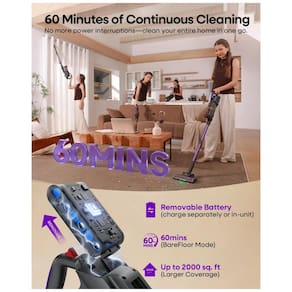 Aspirador de Pó Sem Fio AlloyMove 45KPA, Até 60 Minutos de Autonomia, Sucção Poderosa para Casa, 3 Modos de Sucção