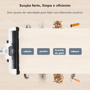 Com um motor BLDC com menor ruído, maior eficiência, 120W e uma bateria de 2000mAh, o Aspirador de Pó oferece duas velocidades de sucção para um controle total.