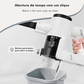 O reservatório de acrílico transparente de 0.75L permite que você veja a sujeira sendo aspirada e, com o toque de um botão, você a descarta diretamente no lixo. Sem contato, sem bagunça, sem esforço.