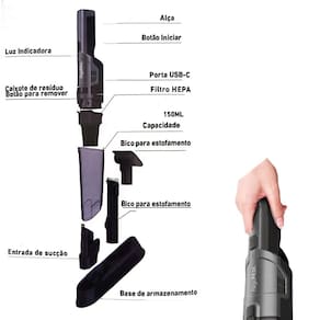 Design Elegante e Compacto Recarregável via USB Componentes Laváveis para Manutenção FácilEssas especificações técnicas garantem que o Aspirador de Mão Sem Fio Power Max seja uma ferramenta poderosa e conveniente para atender às suas necessidades de limpeza, proporcionando eficácia e praticidade em um único pacote compacto.