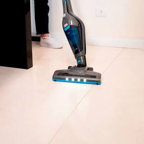 A iluminação LED frontal é projetada para iluminar áreas de difícil acesso, como sob móveis ou em cantos escuros. Isso assegura que você não perca nenhum resíduo, proporcionando uma limpeza mais minuciosa e eficaz. Além disso, sua escova rotativa tem a capacidade de remover sujeira profunda, alcançando os cantos e fendas que outros modelos poderiam deixar para trás.