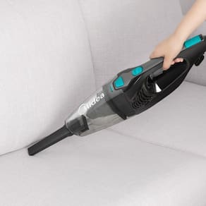 Design 2 em 1: uso como aspirador vertical ou portátil para limpar pisos, estofados e cantos com mais praticidade.