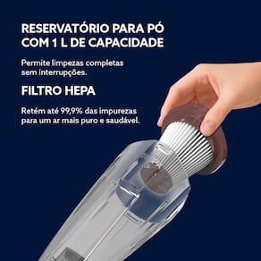 Aspirador de pó vertical 2 em 1, com 600W de potência e sucção de 17 kPa.Tipo de coletor