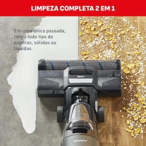 • Solução 2 em 1: Aspira e lava ao mesmo tempo, economizando metade do seu tempo.