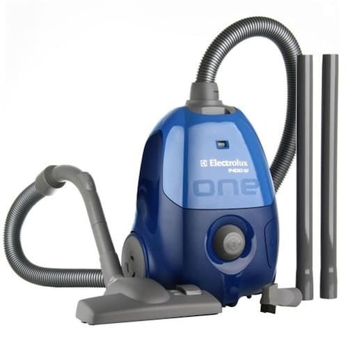 Aspirador de Pó Electrolux com acionamento por pedais, regulador de potência, filtro e indicador de coletor cheio. Inclui bocais para pisos e cantos.Indicador de coletor cheio