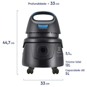 Saco de papel descartávelFiltro HEPA (filtra até 99,9% das impurezas do ar)