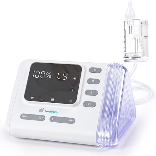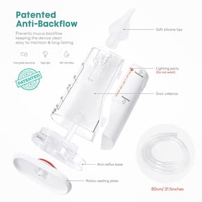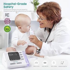 Aspirador nasal elétrico para bebês, sucção ajustável com 9 níveis - Sucção potente para alívio de congestionamento: o aspirador nasal Pro oferece 9 níveis de sucção ajustável de até 70 Kpa, de suave a potente, aliviando o congestionamento nasal de forma rápida e eficiente conforme seu bebê precisa, ajudando o bebê a respirar com facilidade. - Portabilidade e conveniência: este sugador de nariz compacto para bebês pode durar até 2,5 horas com carga total e vem com uma bolsa de cordão e compartimento de armazenamento embutido para todos os acessórios, o que é adequado para viagens para os pais. - Design suave e seguro: nosso sugador de muco prioriza o conforto e a segurança de seus pequenos. Este aspirador nasal com uma ponta de silicone macio minimiza qualquer desconforto e é adequado para bebês, o que o torna uma ótima escolha para a futura mamãe. - Adequado para bebês sensíveis: você pode tocar música para acalmar seu bebê, e a luz do recipiente de ranho pode garantir cuidados nasais à noite. O aspirador nasal profissional funciona mais silenciosamente, o que é perfeito para recém-nascidos sensíveis. - Facilidade de uso e limpeza para os pais: o aspirador nasal vem com um kit de limpeza, que é simples de desmontar e fácil de limpar. Recomenda-se lavar com sabão após cada uso.