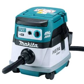 Aspirador de pó e líquido 36v 8 litros sem bateria e carregador com aws e filtro hepa makita dvc864lz Este produto é recomendado para quem já tem ferramenta a bateria da linha 18v lxt. O potente motor bl sem escovas oferece grande poder de sucção usando duas baterias lxt de 18v baterias não incluídas . O motor bl brushless elimina as escovas de carvão, permitindo que o motor funcione mais frio com maior eficiência e vida útil mais longa. Eficiente sistema de filtragem hepa de três estágios que captura 99,97% das partículas de 0,3 mícrons ou maiores. O sistema de limpeza do filtro foi projetado para manter a eficiência de sucção ideal e maior vida útil do filtro. O sistema aws utiliza a tecnologia bluetooth para estabelecer comunicação entre a ferramenta e o extractor de pó sem necessidade de fios. não acompanha acessorio , vendido avulso codigo 198901-5 Até 75 minutos de operação contínua em baixa e 40 minutos em alta usando duas baterias bl1850b 18v lxt 5.0 ah baterias não incluídas . de grandes dimensões para ligar/desligar. As rodas traseiras possuem uma alavanca de travão para evitar movimentos inesperados do aspirador. Especificações técnicas: Volume de ar: 2.1m/min Sucção máxima: 9.8kpa Nível de ruído: 82db Reservatório: 8 litros Dimensões c x l x a : 366 x 334 x 386mm Peso: 7.7kg Bateria: 18v Conteúdo da embalagem: 1 aspirador de pó a bateria 36v 18v+18v Tubo reto Tubo curvo Bocal para cantos Mangueira para limpeza 2,5 metros Mangueira para conexão com ferramentas com 5 metros 10 sacos plásticos e conectores Não acompanha bateria e carregador. Imagem meramente ilustrativa Homologação Anatel: 025391804786