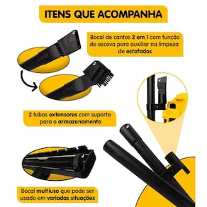 Aspirador De Pó E Líquidos 1000W 18 Litros Apv 1018 127V Vonder DESCRIÇÃO Sabemos que a limpeza pode ser uma tarefa árdua, especialmente com o acúmulo de poeira e sujeira que afetam nossa qualidade de vida. As soluções tradicionais muitas vezes não são tão eficientes quanto precisamos. O Aspirador de Pó APV 1018 127V da Vonder é a resposta para um ambiente mais limpo e saudável sem o incômodo de limpezas demoradas, seja para seu uso diário ou , todos seus resíduos sumirão em um piscar de olhos BENEFÍCIOS - Limpeza Poderosa: Com 1000W de potência, este aspirador lida facilmente com poeira e detritos em diversas superfícies; - Função de sucção e sopro; - Filtro HEPA: Alta eficiência na retenção de partículas e tripla filtragem; - Filtro esponja: Atua como uma barreira para partículas maiores e também ajuda a proteger o motor, evitando que resíduos ou líquidos atinjam componentes sensíveis; - Versatilidade: Aspira sólidos e líquidos e pode ser para limpeza doméstica em pisos, carpetes, móveis, veículos e muito mais; - Manuseio Conveniente: Seu design articulado, rodas para mobilidade e tubo prolongador tornam a limpeza fácil e eficiente; CARACTERÍSTICAS - Alta Potência e Eficiência: Equipado com um motor de 1000W, o aspirador de pó APV 1018 127V oferece alto desempenho na sucção de sujeira, garantindo eficiência na limpeza de sólidos e líquidos. Seu vácuo de aproximadamente 15 kPa proporciona forte poder de sucção, ideal para ambientes profissionais que exigem rapidez e eficácia. - Capacidade e Mobilidade Aprimoradas: Com um reservatório de 18 litros, o aparelho permite longos períodos de uso sem necessidade frequente de esvaziamento. Além disso, seu cordão elétrico de 5,2 metros e seu peso reduzido de apenas 3,3 kg oferecem praticidade e facilidade de movimentação, tornando o uso mais confortável e versátil. - Durabilidade e Conformidade com Normas de Segurança: Desenvolvido seguindo os padrões internacionais IEC 60335-1 e IEC 60335-2-2, o aspirador garante segurança e confiabilidade para . Sua estrutura robusta e design compacto 335 mm x 330 mm x 460 mm tornam o equipamento resistente e adequado para diversas aplicações. ESPECIFICAÇÃO TÉCNICA - Modelo: APV 1018 127V; - Linha: ; - Tensão V : 127 V; - Frequência: 60 Hz; - Potência do motor: 1000 W; - Capacidade do reservatório: 18 litros; - Comprimento do cordão elétrico do aspirador de pó: 5,2 metros; - Tipo de aspiração do aspirador de pó: Sólidos e Líquidos; - Vácuo: Aproximadamente 15 kPa - 150 mbar; - Segue norma: IEC 60335-1 e IEC 60335-2-2 - Dimensões C x L x A : 335 mm x 330 mm x 460 mm; - Nível de potência sonora LwA : 95 dB A ; - Massa aproximada peso : 3,3 kg. 12 meses de do fabricante; A NÃO cobre erros de instalação ou MAU uso. CONTEÚDO DA EMBALAGEM - 1 Aspirador de pó; - 1 Mangueira flexível de sucção; - 1 Tubo extensor divido em 2 ; - 1 Bocal cantos/escova; - 1 Bocal Multiuso; - 1 Saco coletor de pó de pano Lavável ; - 4 Rodízios; - 1 Filtro espoja; - 1 Filtro HEPA. No Grupo CarroSomShop PEPE PARTS, entendemos sua paixão por ferramentas. É por isso que nos dedicamos a fornecer os melhores produtos para que você possa construir os melhores projetos. Explore nossa loja e descubra uma variedade de ferramentas que vão desde aspiradores de pó, Inversor de Solda, sopradores, etc até ferramentas de jardinagem. Descubra o que você precisa para elevar seu projeto a um novo patamar Junte-se a nós e experimente o compromisso do Grupo CarroSomShop PEPE PARTS com a qualidade e a satisfação do cliente. Estamos ansiosos para atender às suas necessidades com produtos especializados e atendimento excepcional. Garanta o seu aspirador de Pó APV 1018 127V 1000W agora, e obtenha um novo nível de habilidade com segurança e conforto.