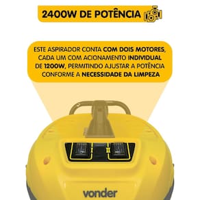 Aspirador De Pó E Líquidos 2400W 80 Litros Apv 2480 220V Vonder DESCRIÇÃO Sabemos que a limpeza pode ser uma tarefa árdua, especialmente com o acúmulo de poeira e sujeira que afetam nossa qualidade de vida. As soluções tradicionais muitas vezes não são tão eficientes quanto precisamos. O Aspirador de Pó APV 2480 220V da Vonder é a resposta para um ambiente mais limpo e saudável sem o incômodo de limpezas demoradas, seja para seu uso diário ou profissional, todos seus resíduos sumirão em um piscar de olhos BENEFÍCIOS - Função de Sopro e Reservatório Prático: Equipado com função de sopro e reservatório com sistema de encaixe, que facilita a abertura e o fechamento. - Facilidade de Transporte: Dispõe de clipe para apoio de acessórios e alça integrada, garantindo maior comodidade na mobilidade. - Alto Desempenho: Com potência total de 2.400W, distribuída entre dois motores de 1.200W, oferece performance superior. - Versatilidade na Aspiração: Eficiente na aspiração de sólidos e líquidos, atendendo diversas necessidades. - : Ideal para ambientes de alto fluxo, como condomínios, escritórios e lava-car. CARACTERÍSTICAS - Desempenho Profissional: Equipado com dois motores de 1200W cada, totalizando 2400W, o modelo APV 2480 proporciona uma sucção poderosa com vácuo de aproximadamente 21 kPa, garantindo eficiência na remoção de resíduos, mesmo nos ambientes mais exigentes. - Versatilidade na Limpeza: Projetado para aspirar sólidos e líquidos, este aspirador atende a uma ampla gama de aplicações profissionais. Seu reservatório de 80 litros permite longos períodos de operação sem necessidade de esvaziamento frequente. - Conformidade e Design Funcional: Com dimensões compactas 485 mm x 495 mm x 860 mm e um cordão elétrico de 4 metros, o APV 2480 alia mobilidade e praticidade. Além disso, cumpre as normas IEC 60335-1 e IEC 60335-2-2, garantindo segurança e confiabilidade no . ESPECIFICAÇÃO TÉCNICA: - Modelo: APV 2480 220V; - Linha: Profissional; - Tensão V : 220 V; - Frequência: 60 Hz; - Potência do motor: 2400W 2 motores de 1200W cada ; - Capacidade do reservatório: 80 litros; - Comprimento do cordão elétrico do aspirador de pó: 4 metros; - Tipo de aspiração do aspirador de pó: Sólidos e Líquidos; - Vácuo: Aproximadamente 21 kPa - 210 mbar; - Segue norma: IEC 60335-1 e IEC 60335-2-2 - Dimensões C x L x A : 485 mm x 495mm x 860 mm; - Nível de potência sonora LwA : 96 dB A ; - Massa aproximada peso : 14,3 kg. : 12 meses de do fabricante; A NÃO cobre erros de instalação ou MAU uso. CONTEÚDO DA EMBALAGEM: - 1 Aspirador de pó e líquidos - 1 mangueira flexível de sucção - 2 tubos extensores - 1 bocal para cantos - 1 bocal escova - 1 bocal multiuso - 2 rodas - 2 rodízios - 1 saco coletor de pano lavável/reutilizável - 1 filtro esponja - 1 filtro HEPA Alta Eficiência em Retenção de Partículas No Grupo CarroSomShop PEPE PARTS, entendemos sua paixão por ferramentas. É por isso que nos dedicamos a fornecer os melhores produtos para que você possa construir os melhores projetos. Explore nossa loja e descubra uma variedade de ferramentas que vão desde aspiradores de pó, Inversor de Solda, sopradores, etc até ferramentas de jardinagem. Descubra o que você precisa para elevar seu projeto a um novo patamar Junte-se a nós e experimente o compromisso do Grupo CarroSomShop PEPE PARTS com a qualidade e a satisfação do cliente. Estamos ansiosos para atender às suas necessidades com produtos especializados e atendimento excepcional. Garanta o seu aspirador de Pó APV 2480 220V 2400W agora, e obtenha um novo nível de habilidade com segurança e conforto.