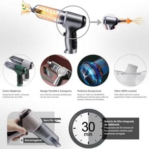Aspirador Portátil Sem Fio 3 em 1 Recarregável - Função Soprador, Vácuo e Sucção Poderosa para Casa, Carro e Escritório