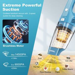 - Forte sucção para limpeza profunda: equipado com motor sem escovas de alta velocidade, este aspirador manual oferece excelente poder de sucção de 14500PA, que pode eliminar eficientemente pelos de animais de estimação, poeira, detritos e migalhas do carro, escritório e casa. O aspirador portátil tem duas velocidades ajustáveis para você enfrentar a limpeza diária rápida e sem esforço com incrível desempenho de limpeza profunda, é um bom ajudante para você fazer seu ambiente parecer novo em um segundo e desfrutar de uma vida mais confortável.
