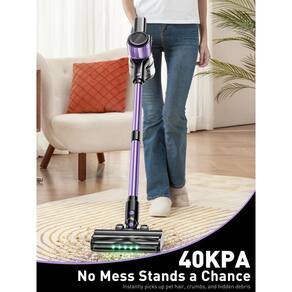 - Sucção forte de 40KPA: domine cada bagunça com 40 kPa de sucção de nível industrial — a mais forte de sua classe! Este aspirador de pó sem fio lida sem esforço com detritos persistentes, migalhas ocultas e pelos pegajosos de animais de estimação. Alterne entre 3 modos (40kPa/33kPa/22kPa) para esmagar sujeira em tapetes, pisos duros ou superfícies delicadas garante uma limpeza profunda e potente
